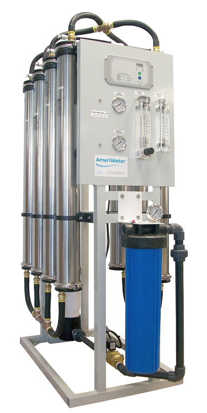 AmeriWater’s IRO series of industrial reverse osmosis systems are designed for durability and ease of operation. These units feature a quiet submersible pump with an open front design for ease of service. They provide high-quality water for industrial applications using 2,400 to 19,200 gallons per day.